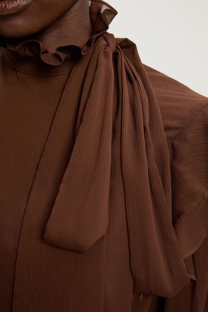 Reimagine the humble check with this blouse. Featuring eye-catching puffed sleeves and ruffles, this piece fastens down to the waist using delicate buttons, then flows into a peplum hem for added shape.