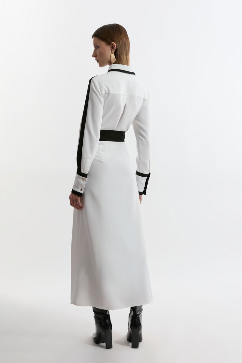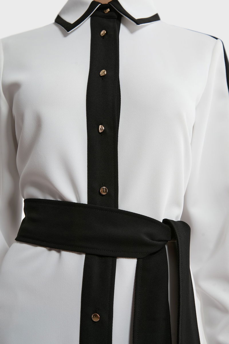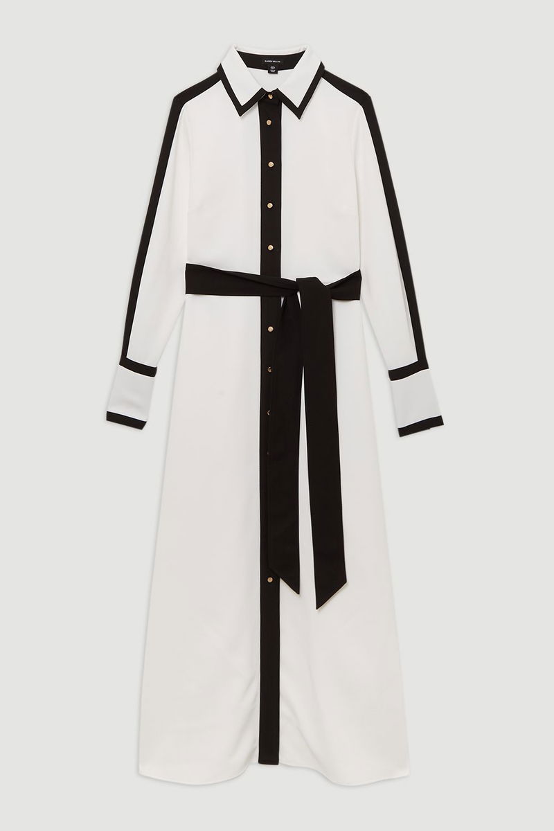 Colour Block Twill Woven Belted Midi Shirt Dress