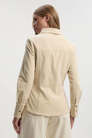 A shirt/jacket hybrid that’s perfect for summer, this boxy design comes crafted from the brand's Compact Cotton for a softly structured finish. Inspired by the enduring utility trend, it features patch pockets, a pointed collar and contrast closures for a pared-back twist.
