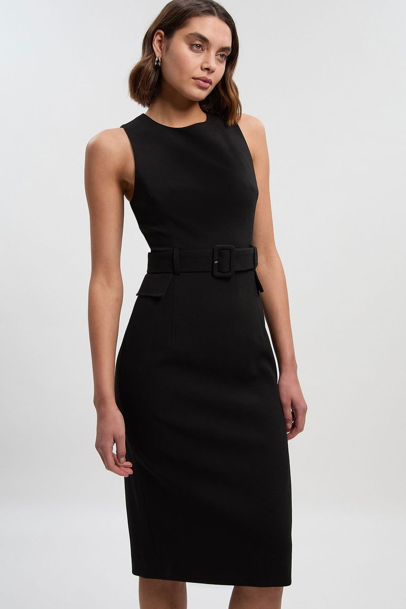 Compact Essenital Belted Midi Pencil Dress