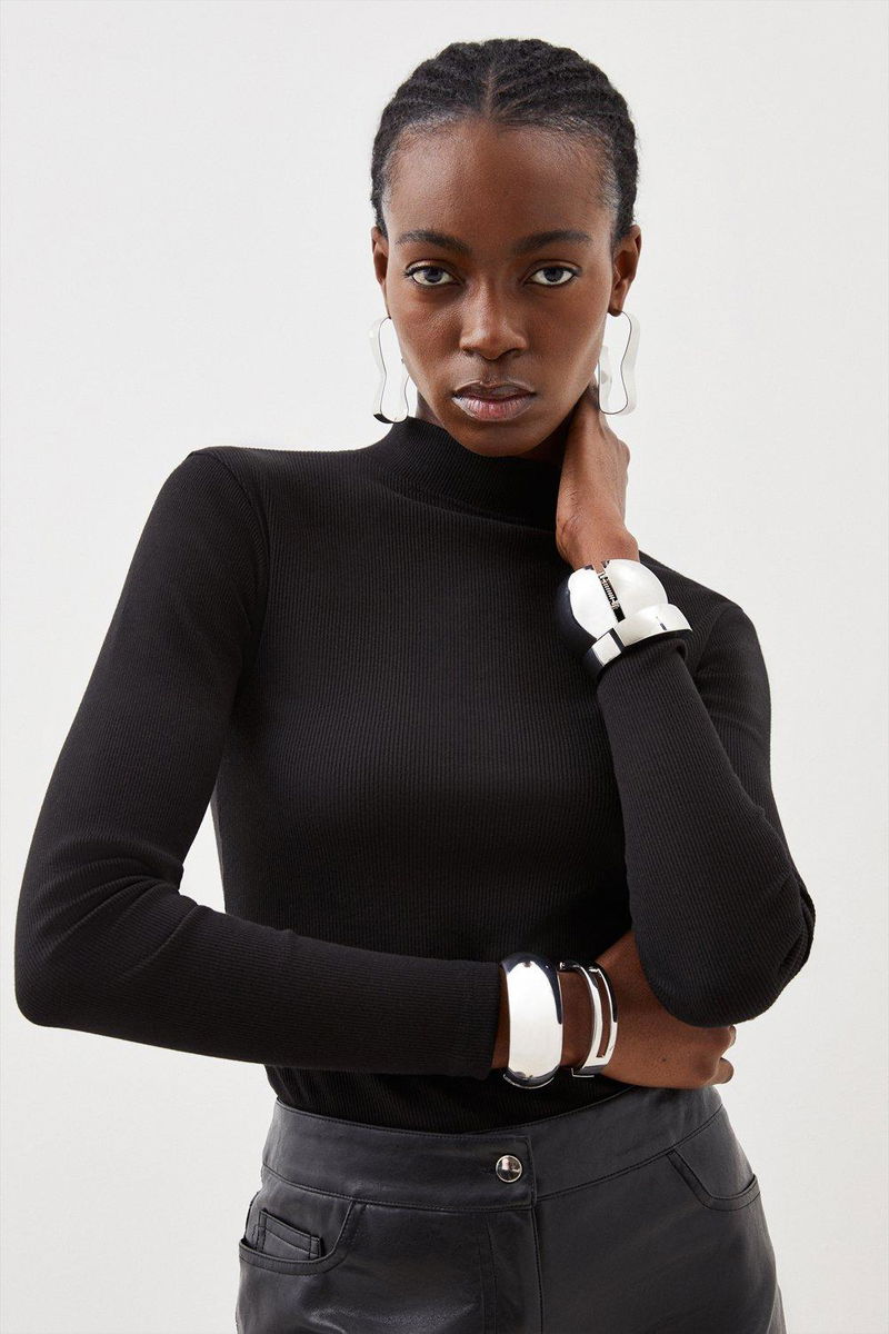 A stylish foundation for all manner of well put-together looks, this form-fitting compact jersey top is the staple piece your wardrobe needs. It shows off a turtle neckline and long sleeves which gently streamline the figure for a perfect layering piece.