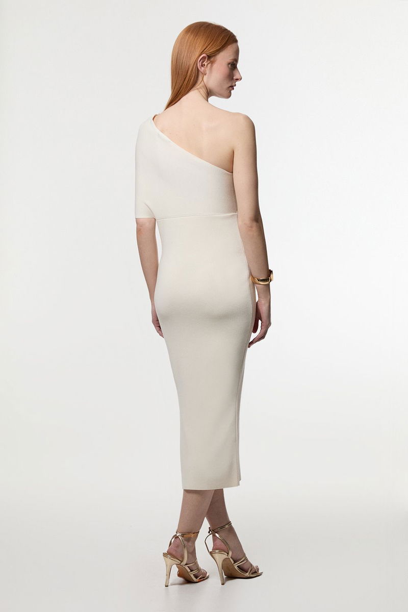Compact Rib Stitch Knitted One Shoulder Dress