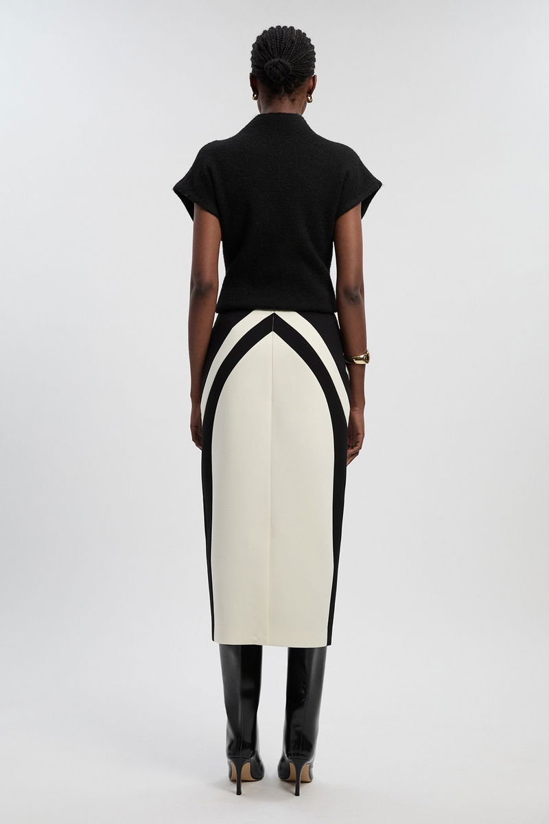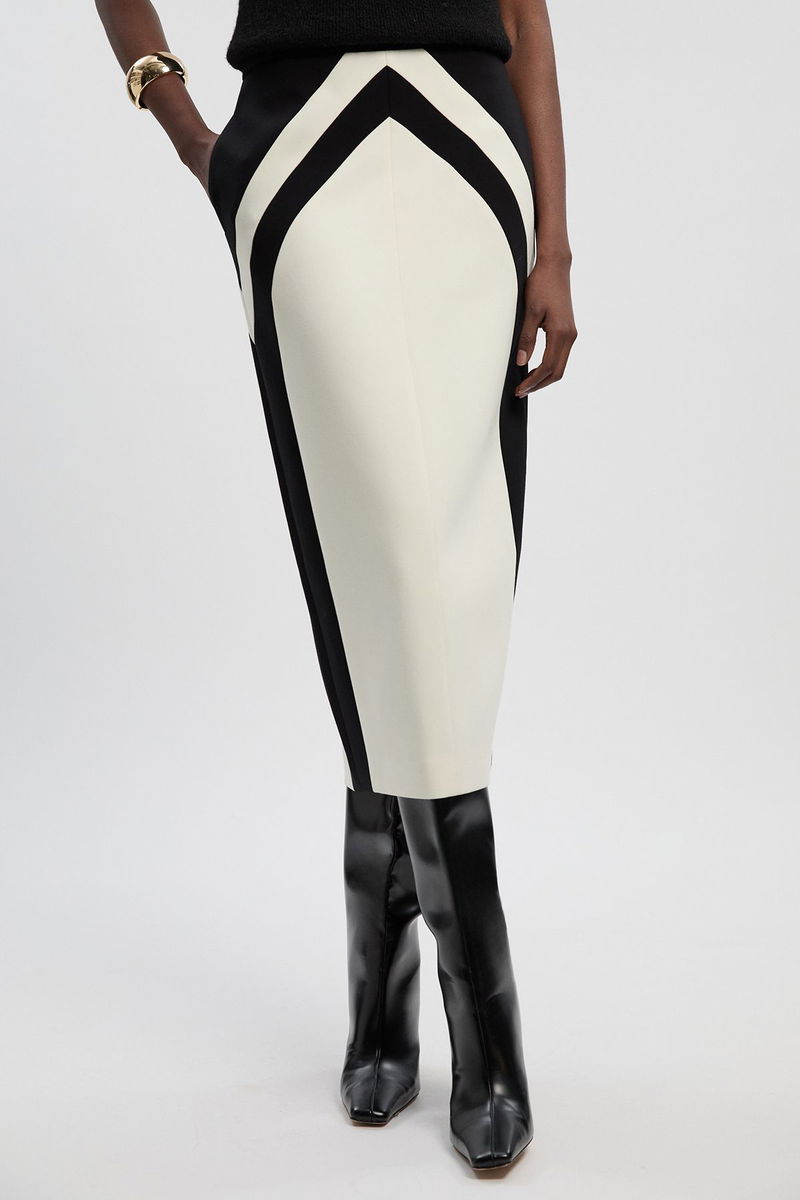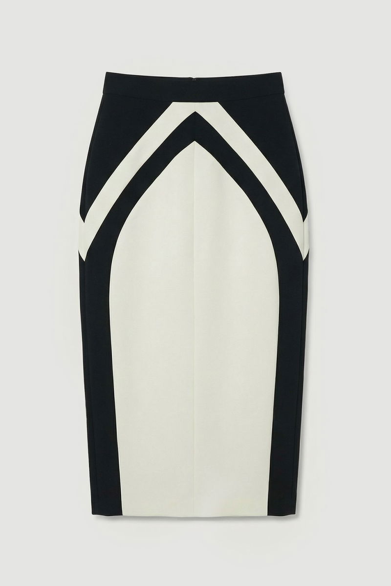 Compact Stretch Colour Block Tailored Pencil Midi Skirt
