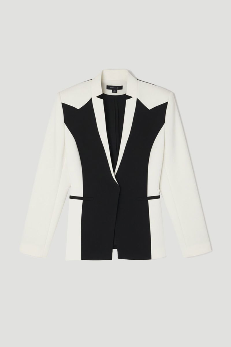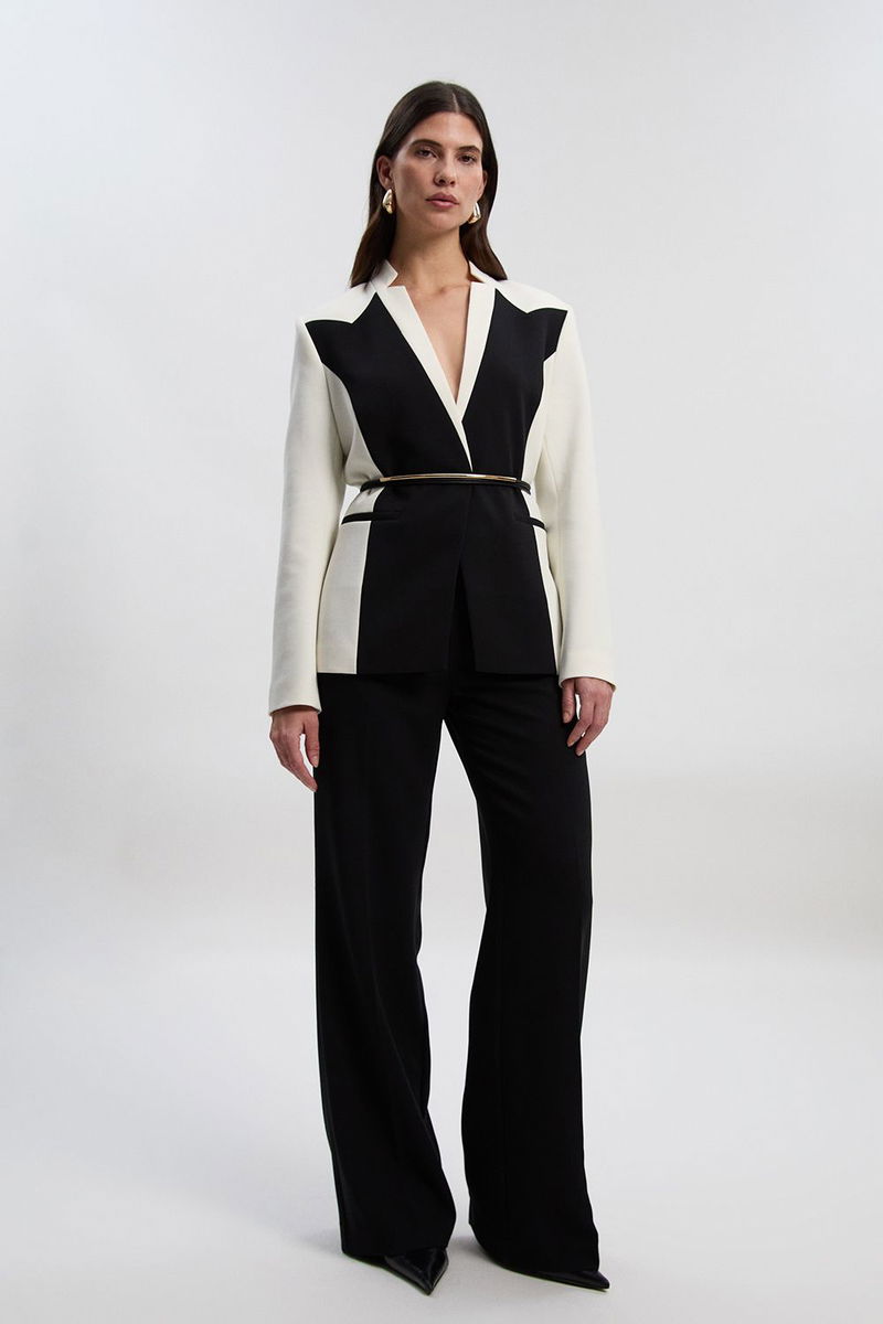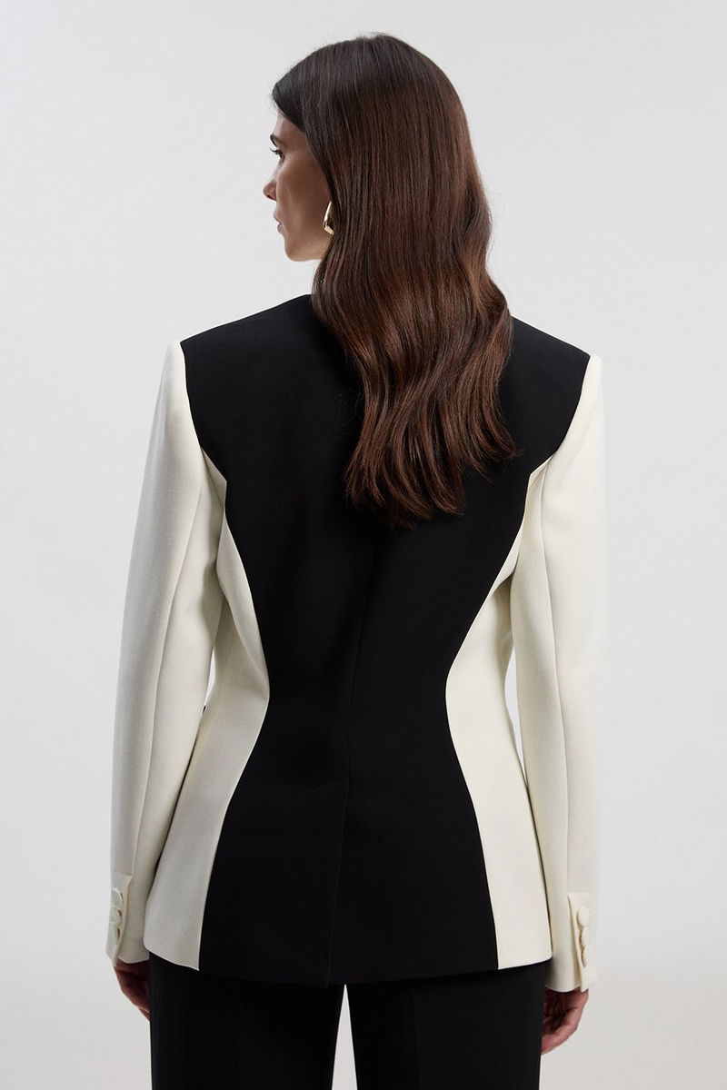 Compact Stretch Colour Block Tailored Single Breasted Blazer