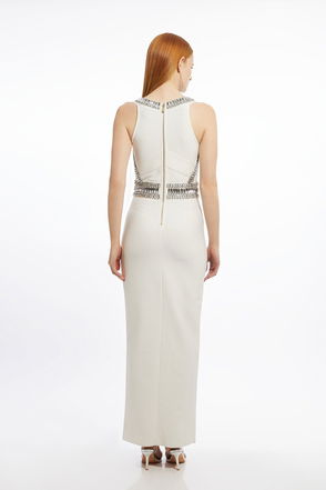 Feel formal in this maxi dress, with a universally silhouette that cinches in at the waist, and a high neckline with a cut out design. Style this piece with heeled ankle boots to protect from the elements, then strappy heels for an evening look.