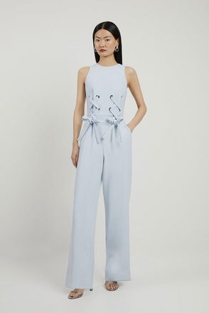 Compact Stretch Halter Neck Pleated Wide Leg Jumpsuit