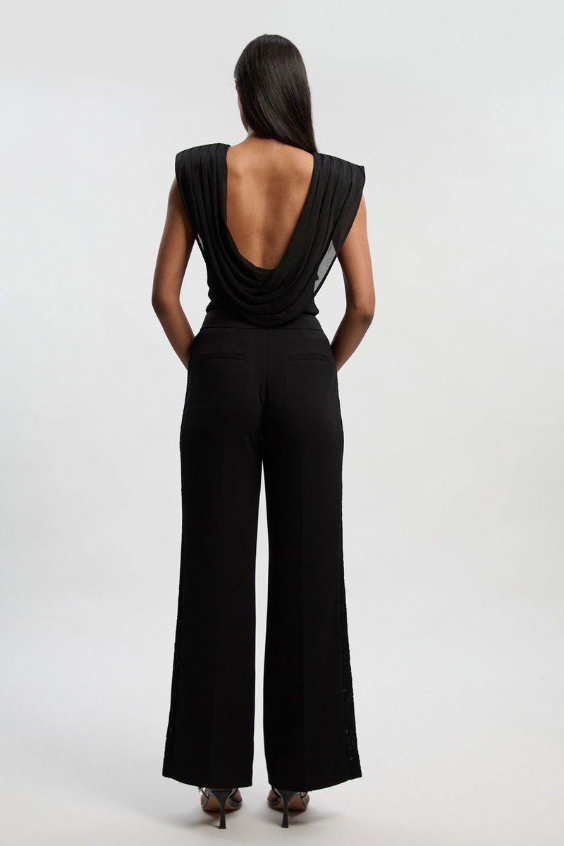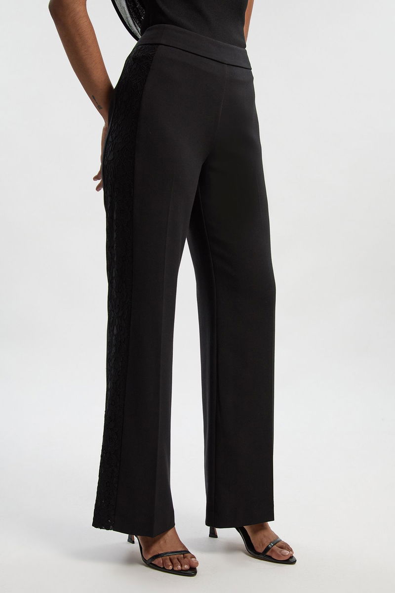 Compact Stretch Lace Mix Tailored Wide Leg Trouser