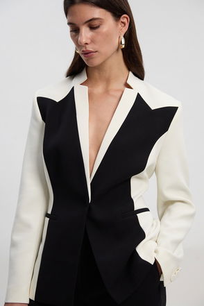 Compact Stretch Tailored Belted Tipped Detail Blazer.