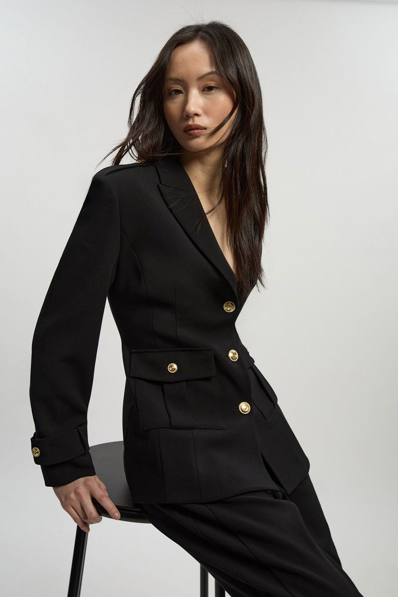 Compact Stretch Tailored Military Single Breasted Blazer