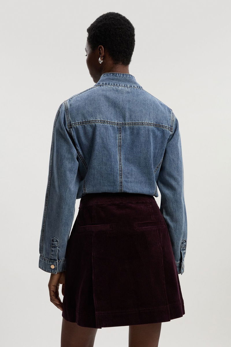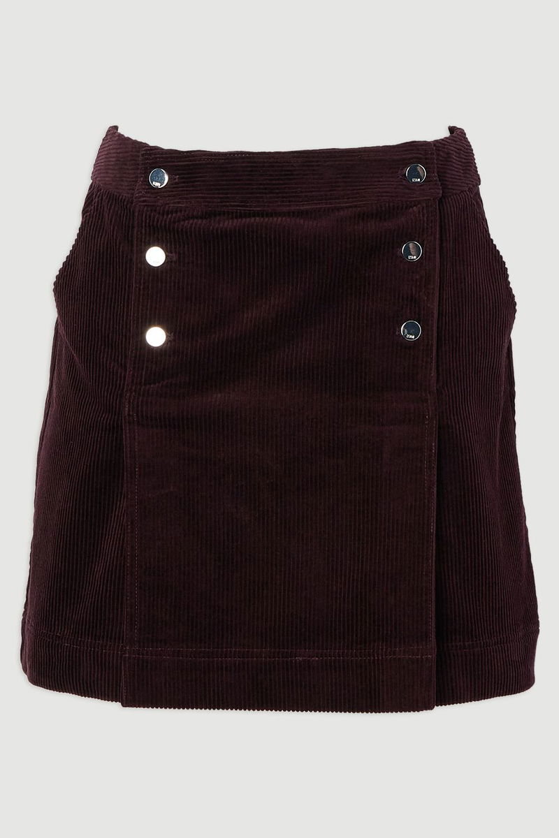 Cord Button Pleat Detail Mini Skirt