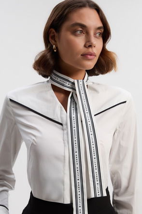 Give a little feminine flair to your styling with this blouse. Featuring cutwork detail and embroidery, alongside delicate scallop trims at the neck and sleeves, it’ll be the prettiest thing you’ll wear all season.