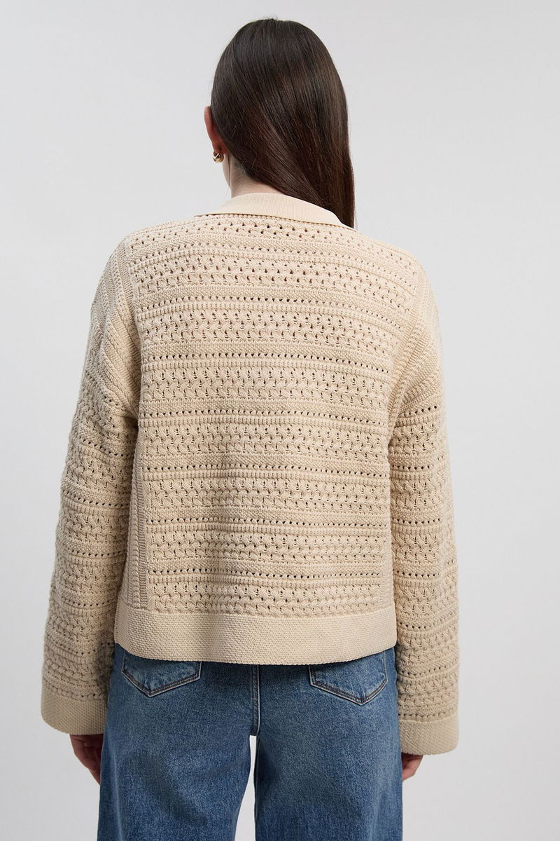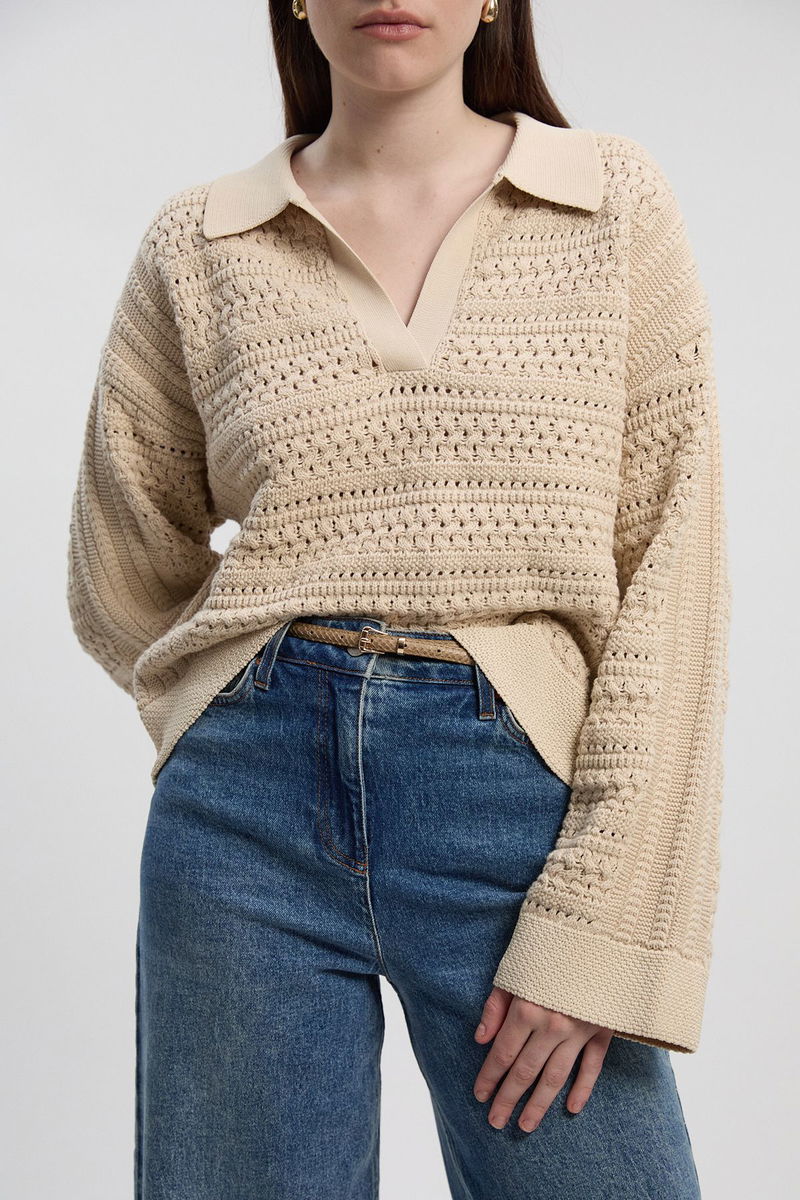 Cotton Collared V Neck Knitted Jumper