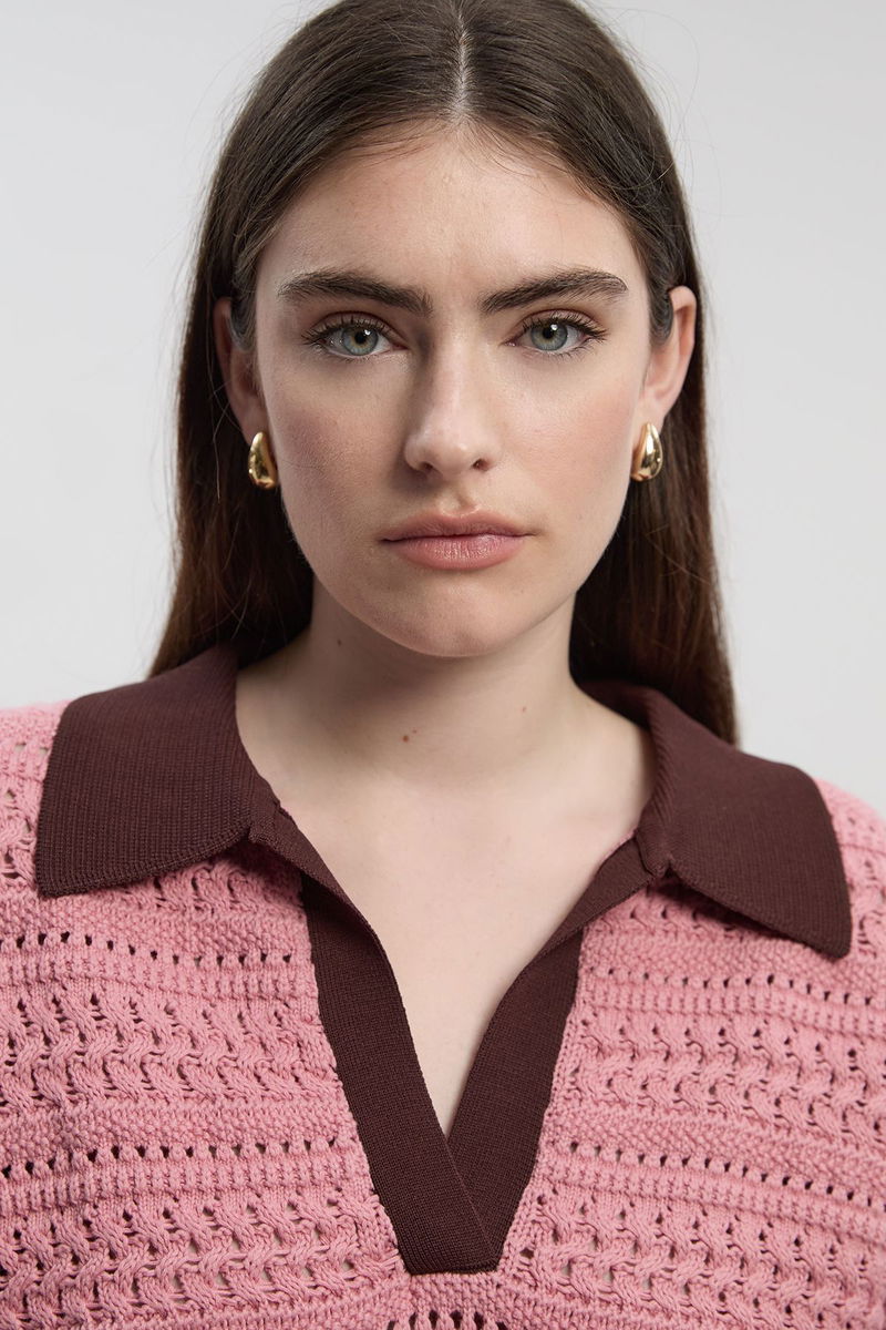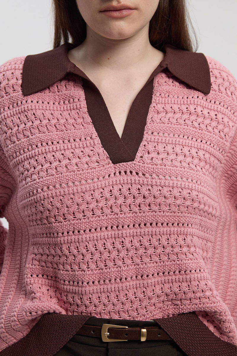 Cotton Contrast Tipping Collared V Neck Knitted Jumper