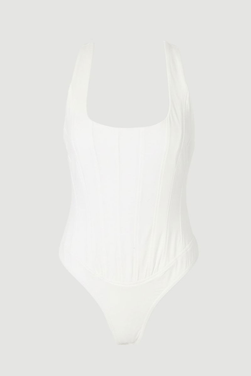 Cotton Elastane Corset Detail Scoop Neck Bodysuit