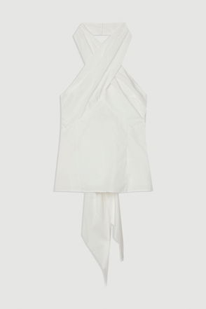 Cotton Poplin Chain Halter Neck Woven Shirt