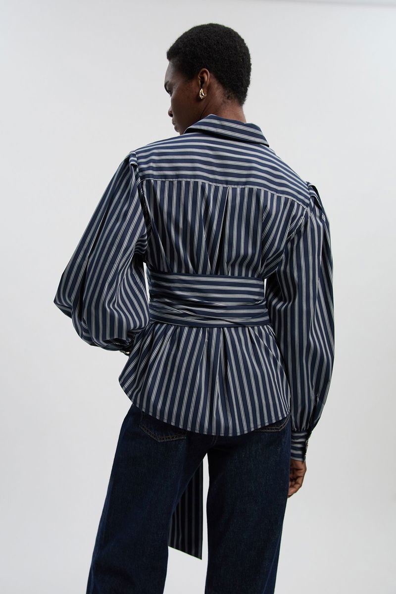 Cotton Poplin Drama Sleeve Woven Wrap Detail Blouse