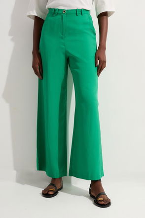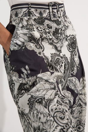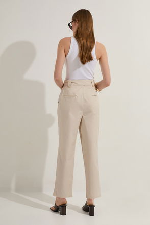 Cotton Sateen Utility Detail Belted Trouser With Gold Hardware Detail