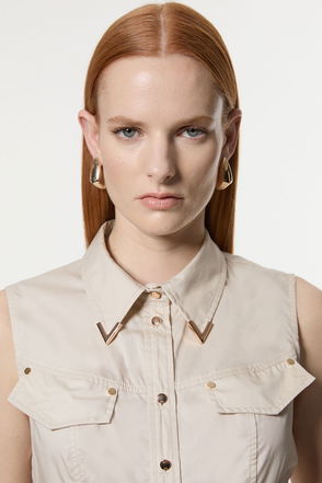 Tailored using soft sateen cotton, this shirt is for workdays and weekends alike. Inspired by the perennial utility trend, the piece comes with shoulder epaulettes, flap-pockets, seam detail, glossy poppers and matching button detail.