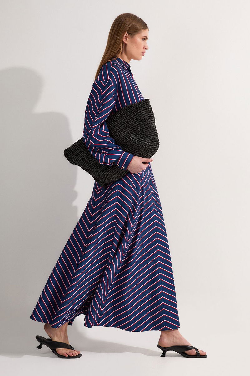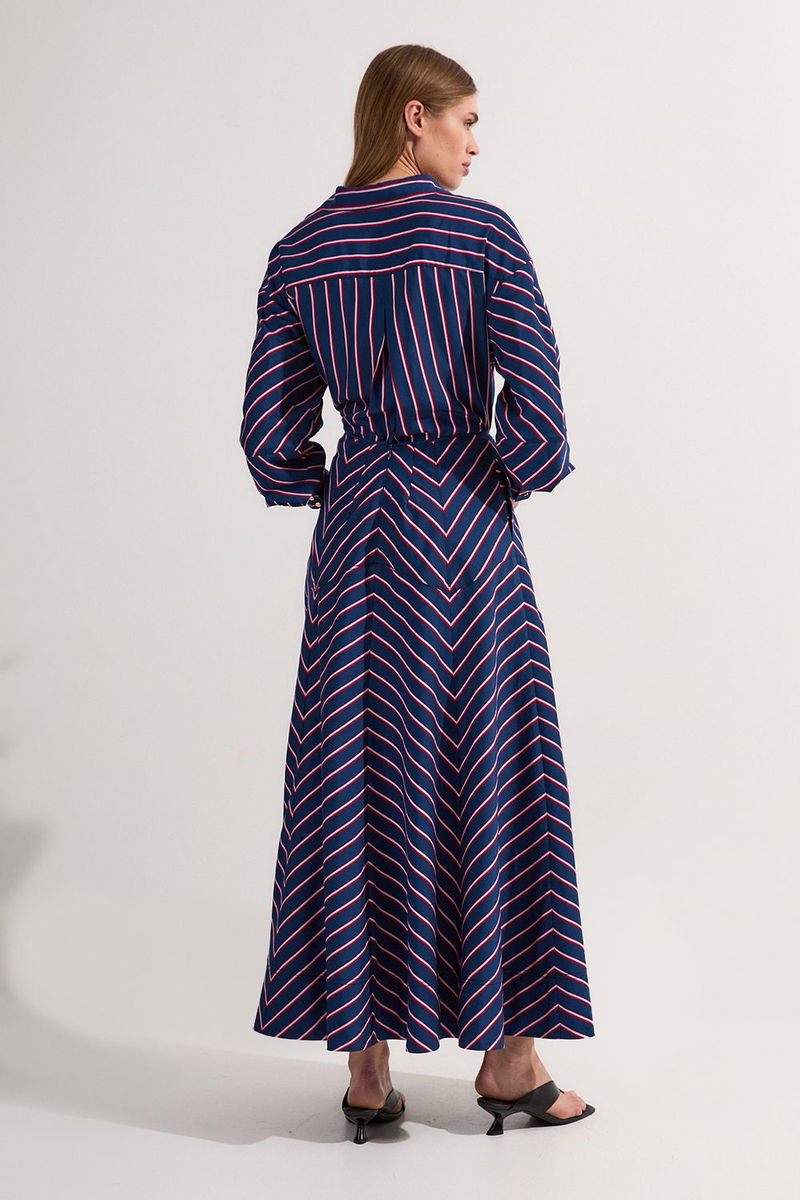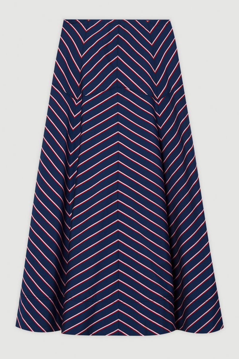 Cotton Stripe Full Midi Skirt