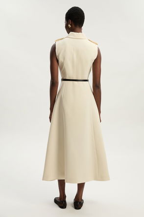 Crinkle Satin Pleated Sleeveless Full Skirt Tailored Midi Dress