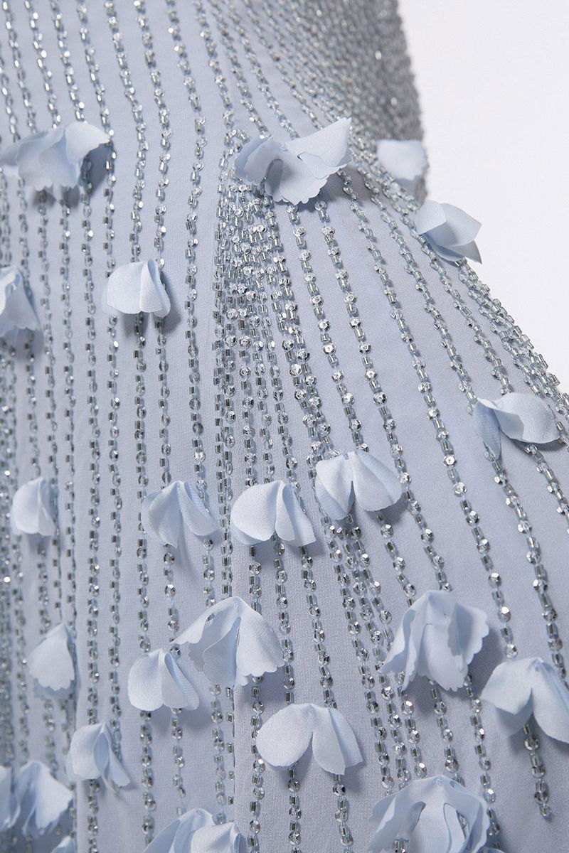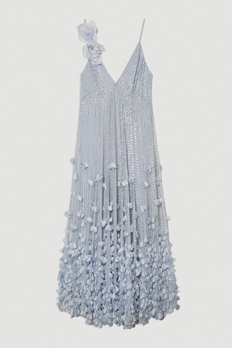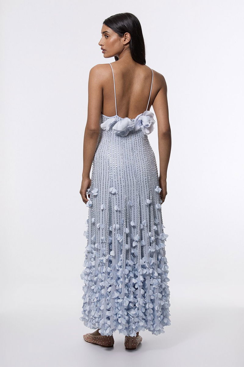 Crystal Applique Strappy Rosette Woven Maxi Dress