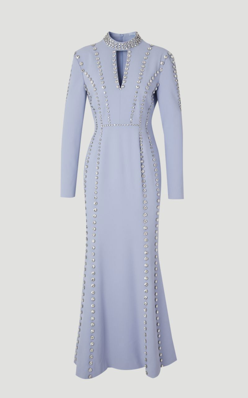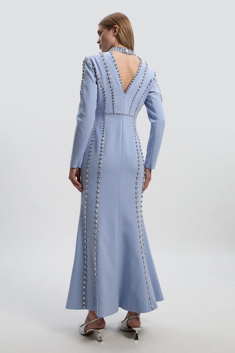 Crystal Embellished Woven Plunge Detail Maxi Dress