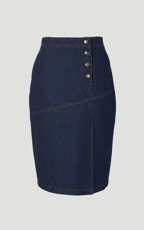 Introducing a new take on heritage. This tweed skirt is designed in a bold houndstooth check and is peppered with our signature KM-branded buttons for an ultra-luxe finish.