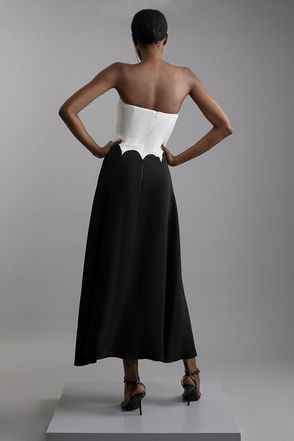 Designed in a form-fitting silhouette, this A-line dress is crafted from our signature compact stretch fabric. Luxurious and ultra-soft to the touch, it has four-way stretch so the piece always fit like a glove. A put-together layered look, it gives a glimpse of a white shirt (with an elegant high collar and glossy popper detail) underneath for an ultra-smart feel.