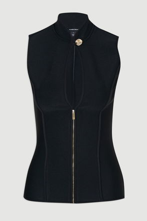 Elevated by glossy gold poppers, this knitted jumper deserves pride of place in any wardrobe. Skimming the figure beautifully with its ribbed texture, the dramatic flap-over collar makes it just the thing for day-to-night styling.
