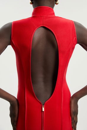 With carefully placed panelling, this jacquard dress highlights the contours of your frame in style. Marrying a modern stripe with a classic leopard print, it's an elevated take on every woman's wardrobe favourite – the bandage knit. Cut with a fitted bodice, the knit beautifully flows into a block-coloured A-line skirt.