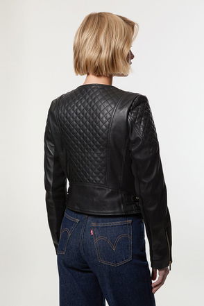 Luxury in the form of a jacket. Sumptuously soft, this leather biker is elevated by our KM-logo embossed buttons and zippers. Crafted to fit you perfectly with its expertly placed panels, the piece comes complete with an asymmetrical zip closure and buckles with glossy metal hardware.