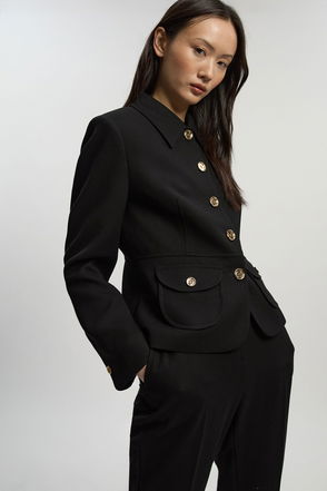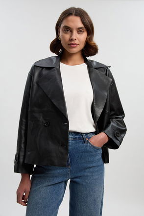 A real signature item, this leather jacket keeps you looking stylish from season to season. Using expertly placed panelling to create a lightly tailored silhouette, the biker comes cropped at the waist and sleeves for a flattering look. The KM-branded buttons and glossy zips also give the classic leather an ultra-premium feel.
