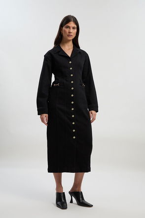 Beautifully detailed with glossy military-inspired buttons, this dress has luxe knitwear covered. Cut close to your figure, the v-neck knit is woven using a ribbed texture that’s not just striking but skims your figure to perfection.