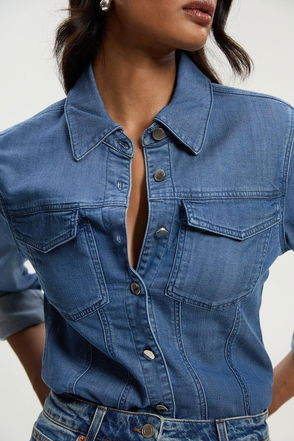 Elevate your summer wardrobe in the collar top, made with classic denim, featuring a fit that hangs loose and button detailing. Styles well with jeans or shorts and trainers or sandals for a multi seasonal outfit that can be worn again and again.