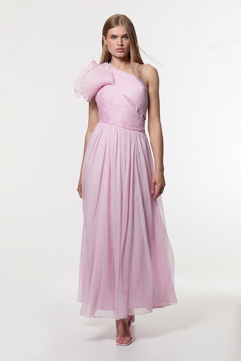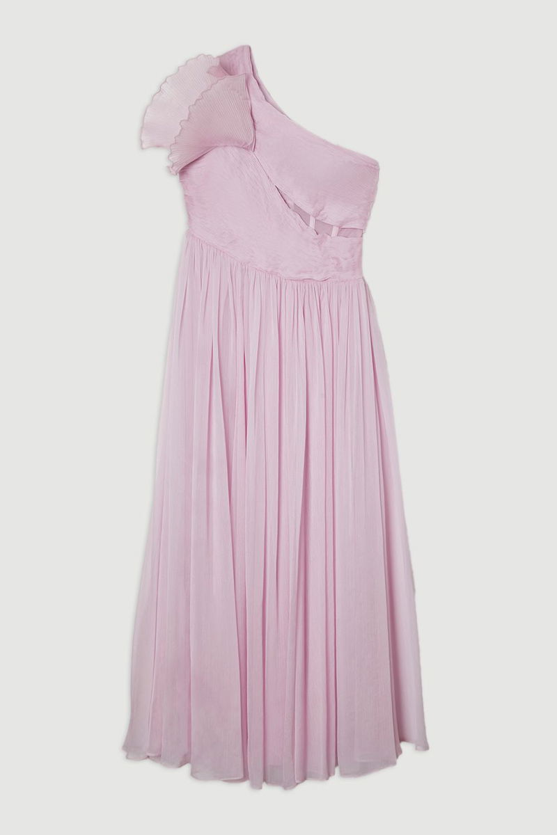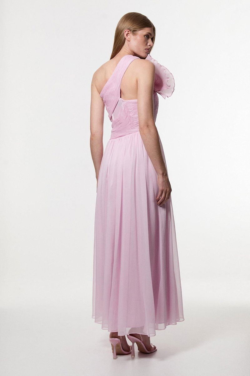 Digital Ophelia Crinkle Georgette Fine Pleated One Shoulder Woven Maxi Dress