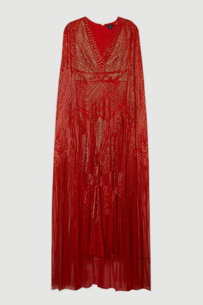 Elevate your occasion wear wardrobe with this maxi dress, with a figure skimming silhouette, and a statement, embellished designn. The cape design adds unmistakeable drama, perfect for catching eyes. Style it with strappy heels for an occasion look that is guaranteed to turn heads wherever you step.