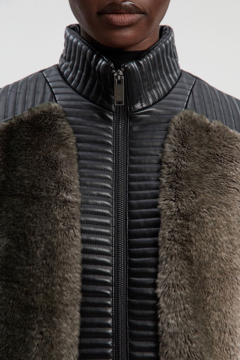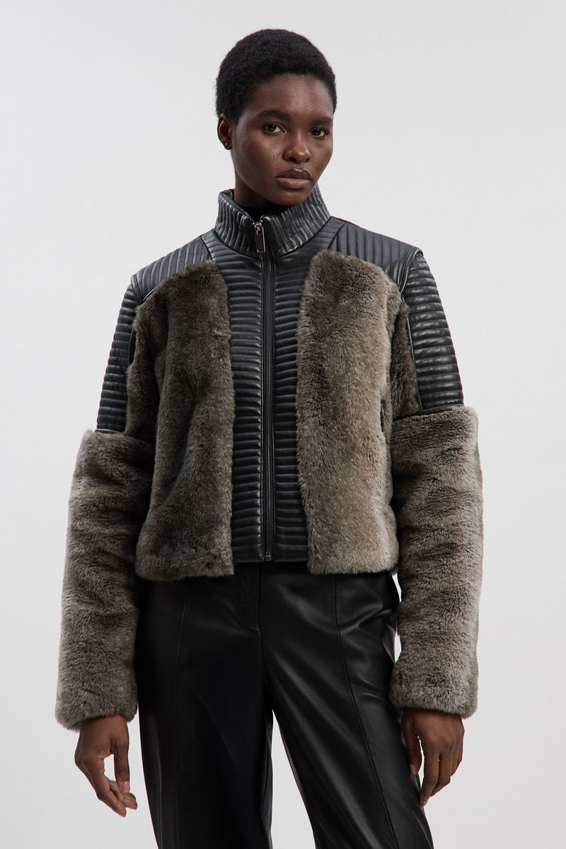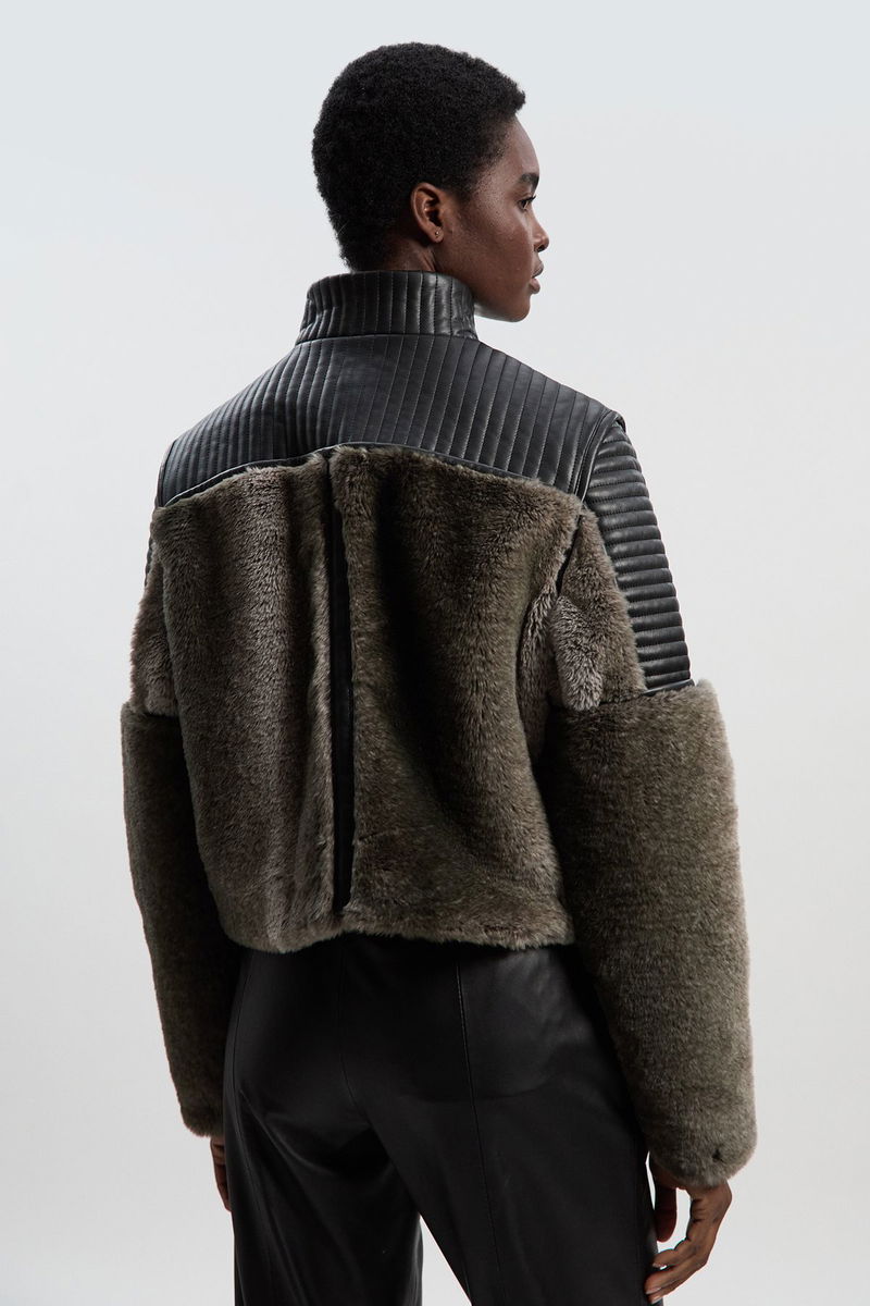 Faux Fur & Faux Leather Panelled Biker Short Coat