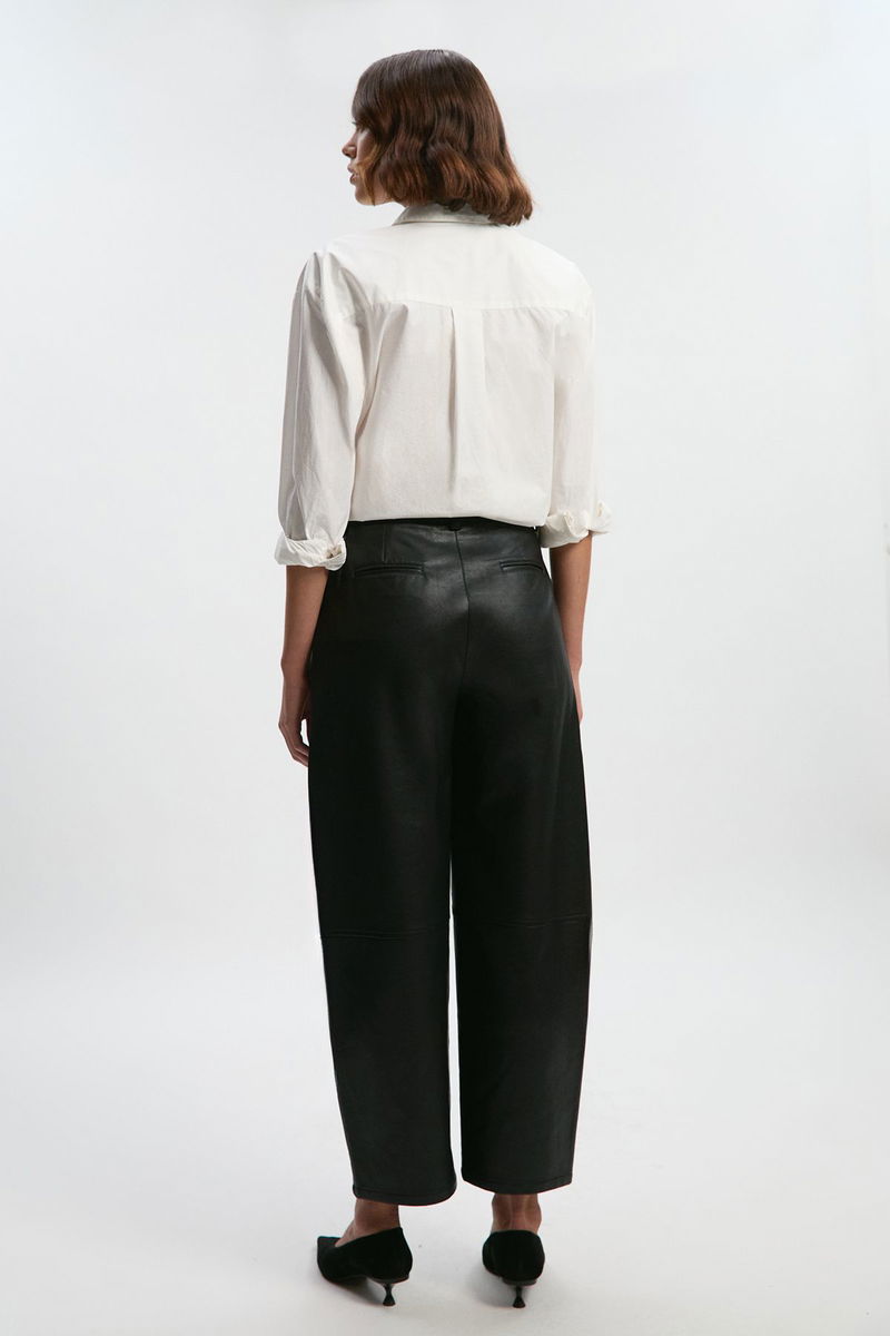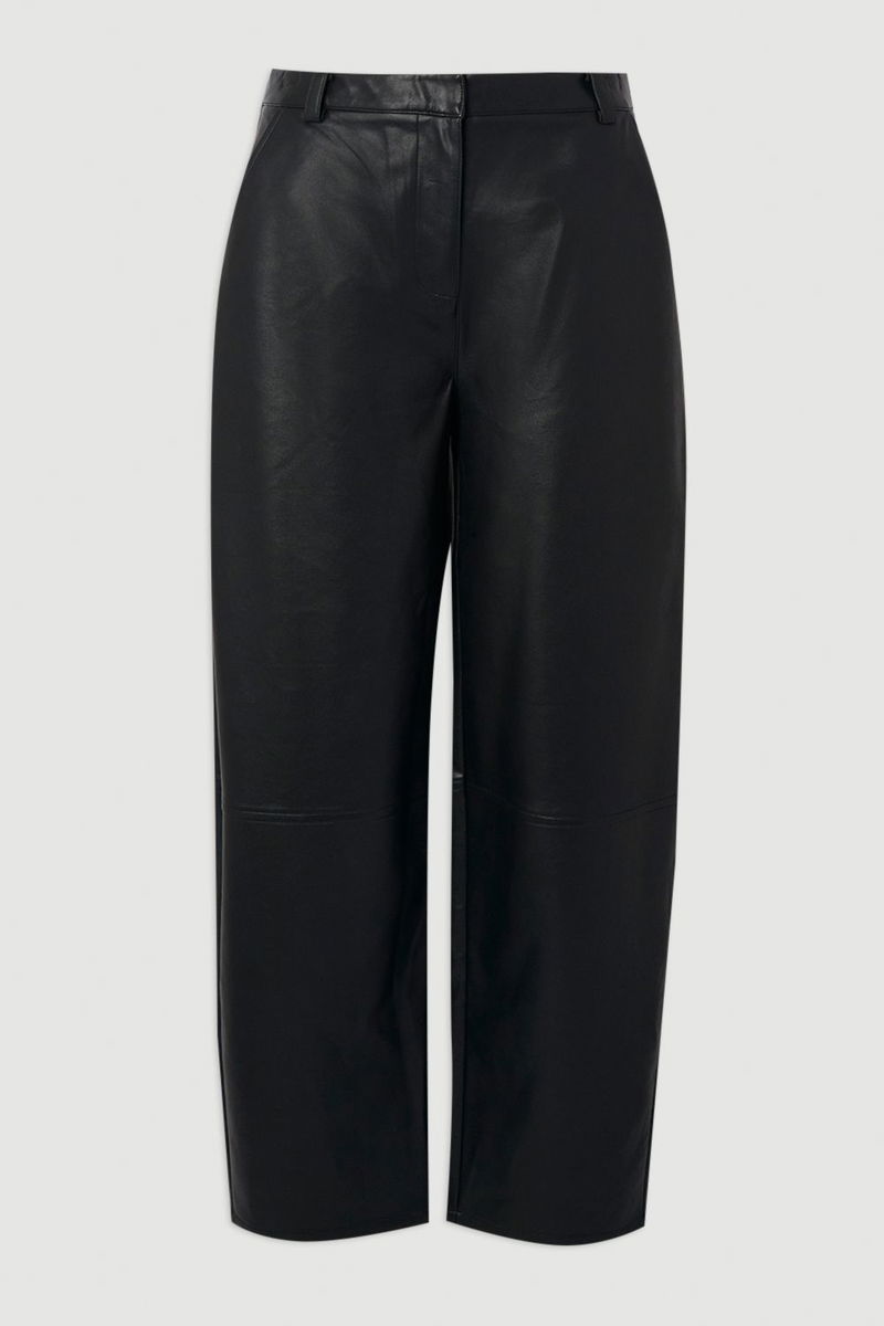 Faux Leather Barrel Leg Trouser