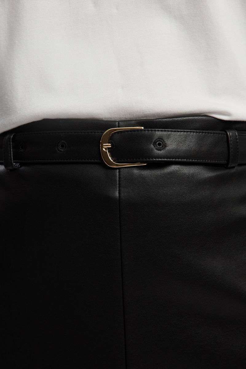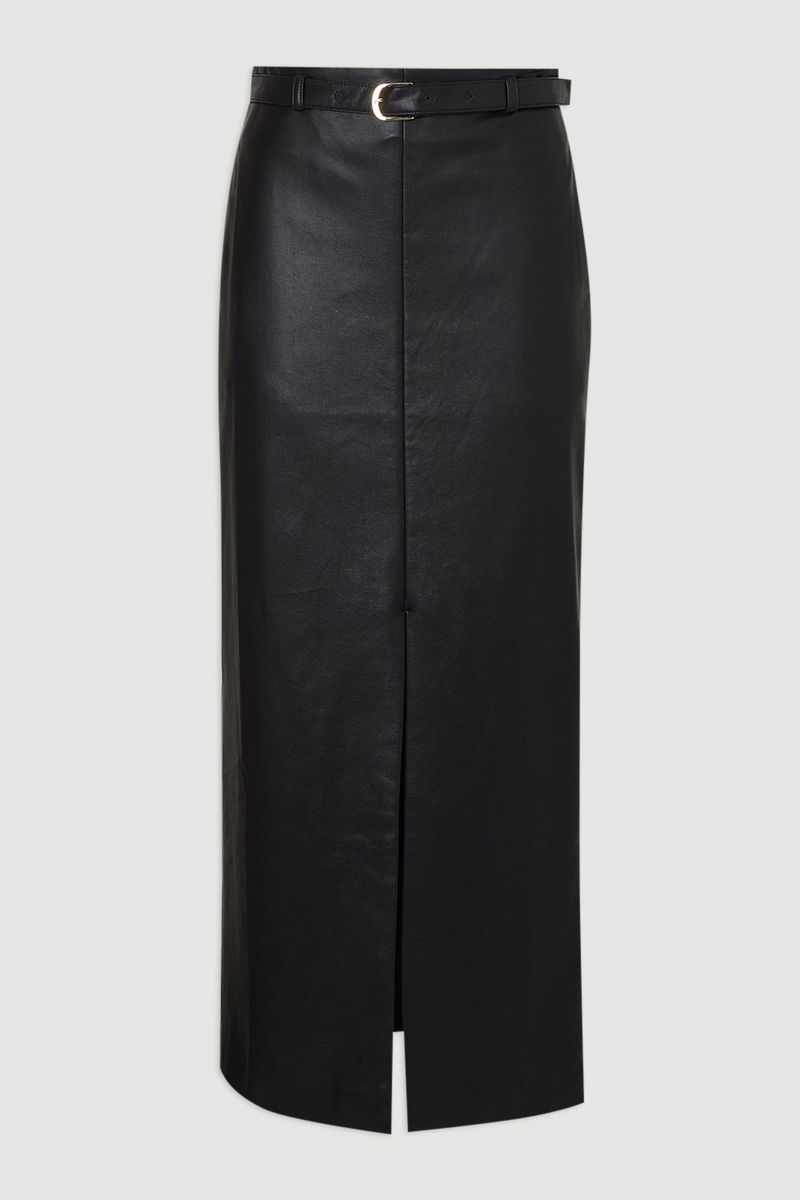 This faux leather midi pencil skirt from Karen Millen embodies contemporary sophistication with its tailored silhouette and refined details. The high-waisted design creates a flattering profile whilst the front split adds both practicality and a touch of allure. The included belt allows you to customise the fit, accentuating your waist for a defined silhouette. This skirt transitions effortlessly between seasons, offering a refined option for casual events whilst maintaining Karen Millen's signature craftsmanship and attention to detail.