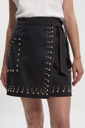 Our wrapped faux leather skirt is so soft and luxurious, it rivals the real thing! It's got a flattering mini silhouette that's punctuated by sleek buckle detail. Pair it with a slim-fit knit and a block heel.
