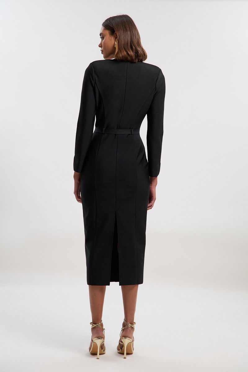 Figure Form Bandage Belted Midi Dress