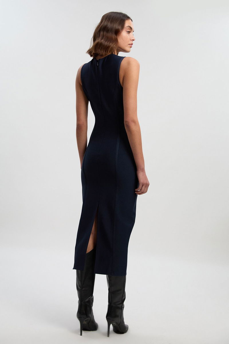 Figure Form Bandage Button Through Pencil Midi Dress