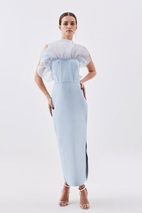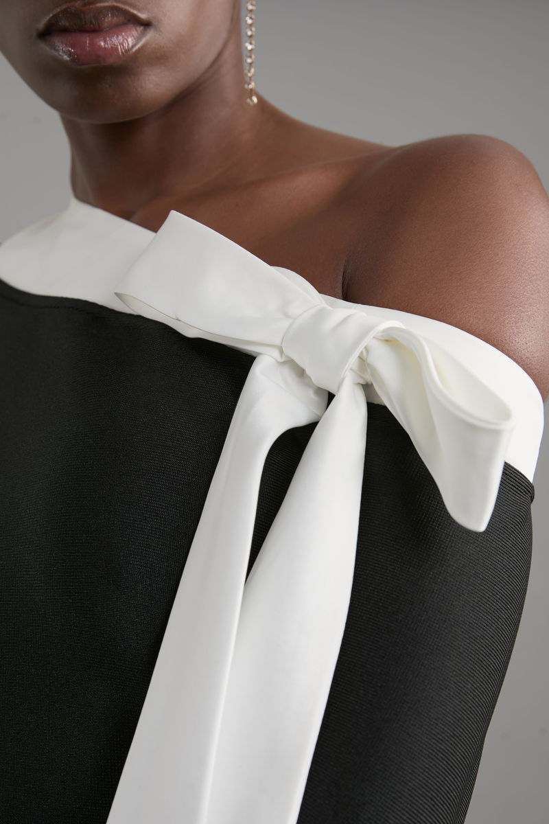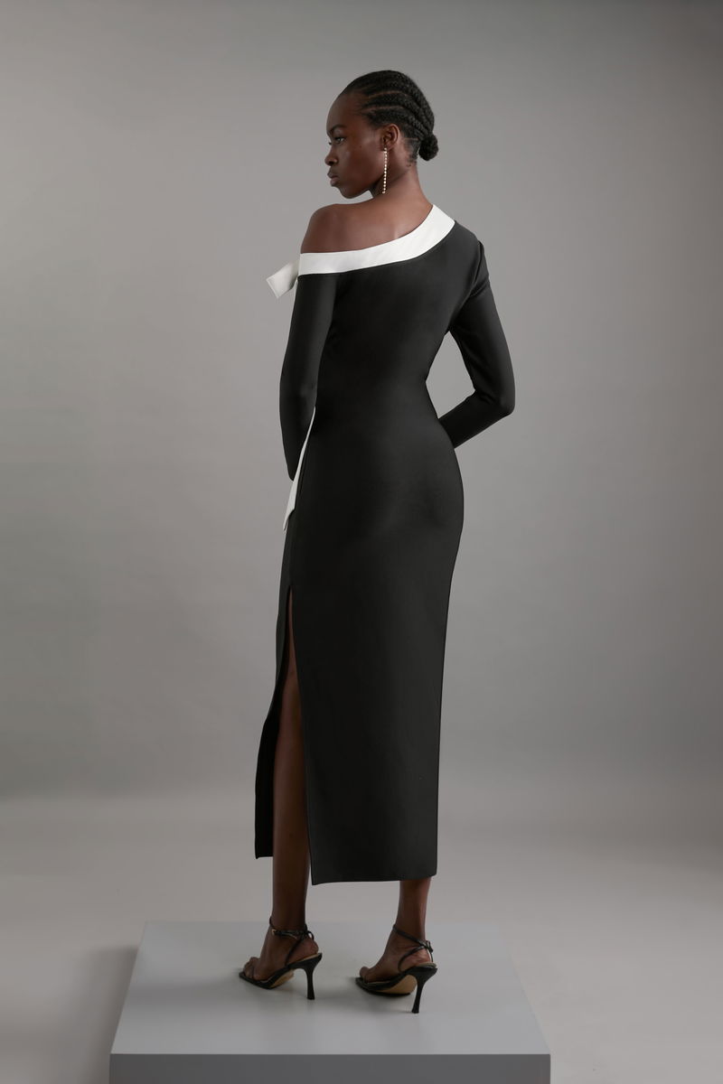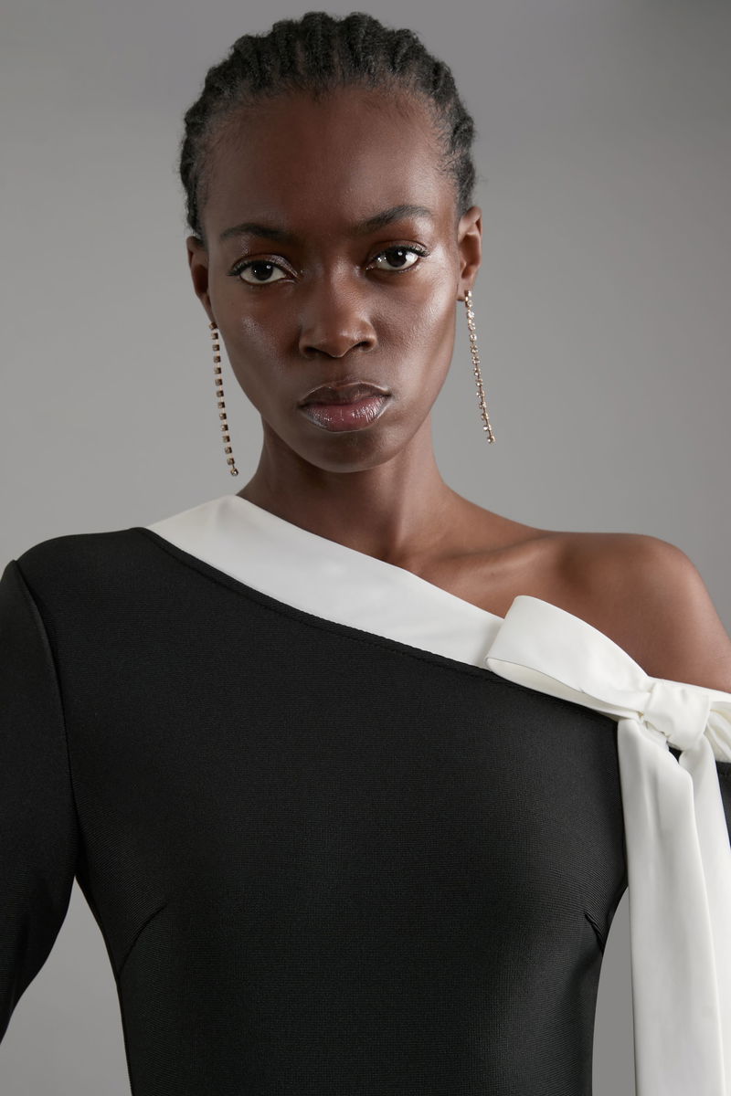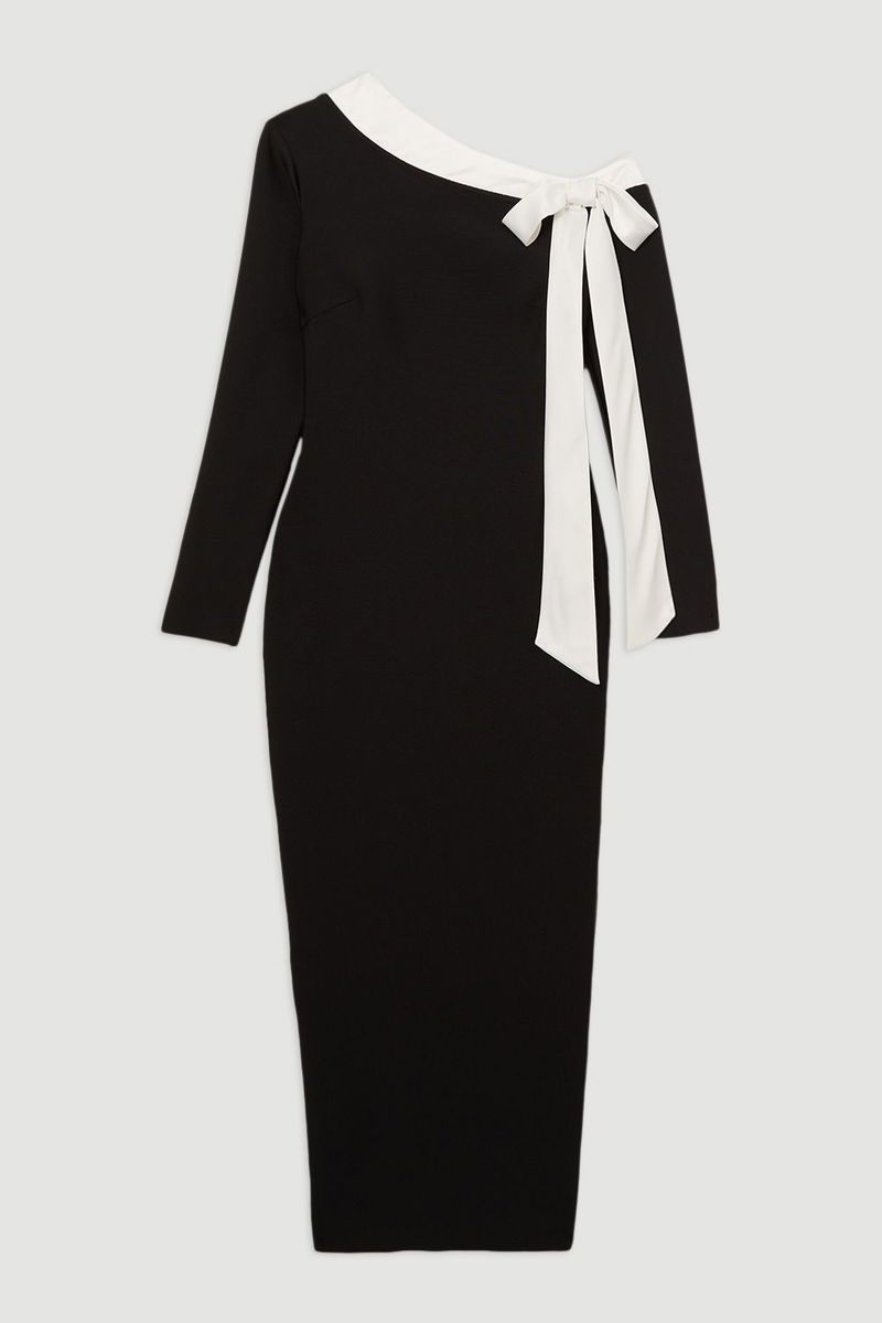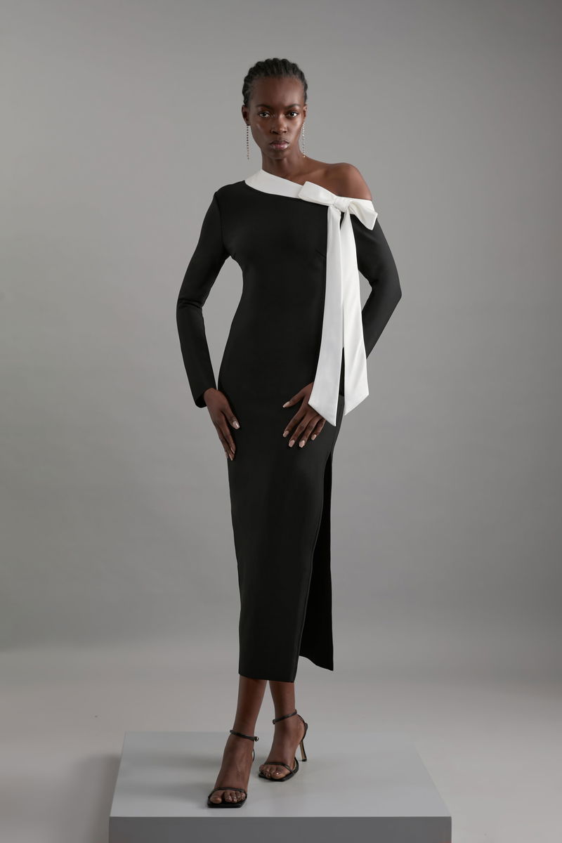 Figure Form Bandage Knit Contrast Bow Detail Maxi Dress
