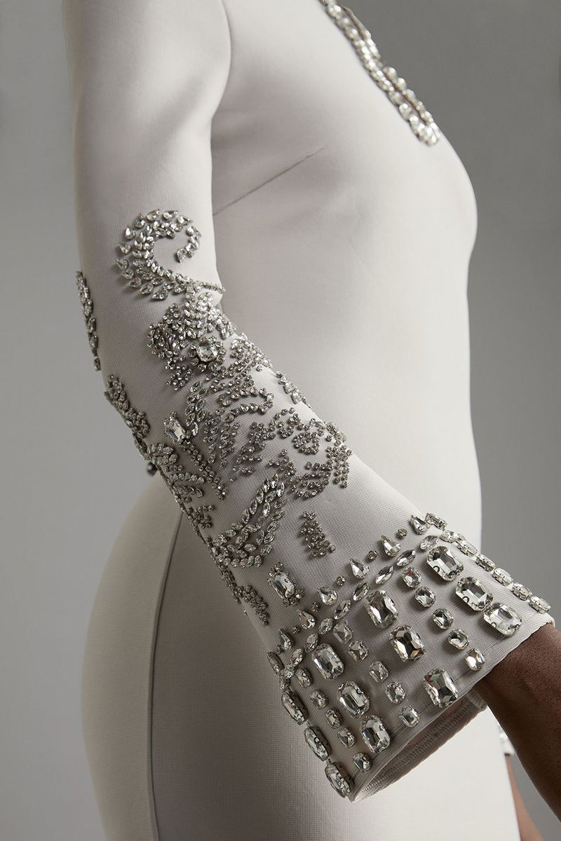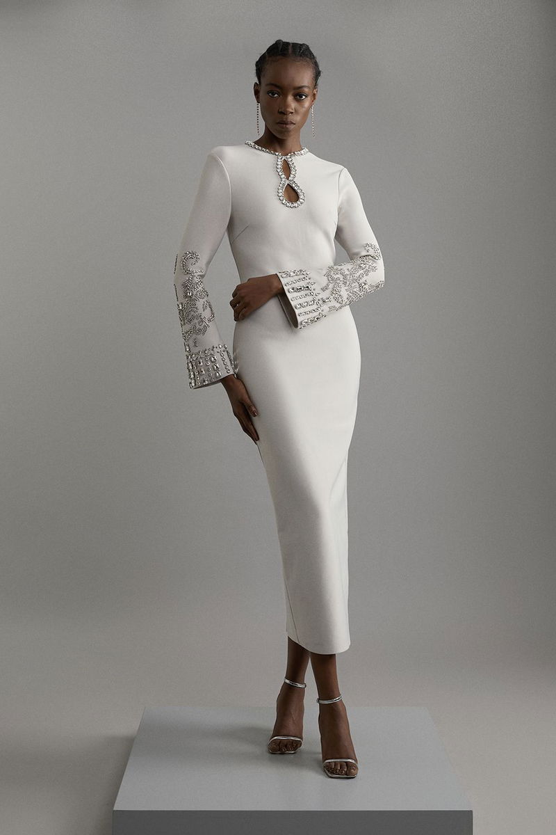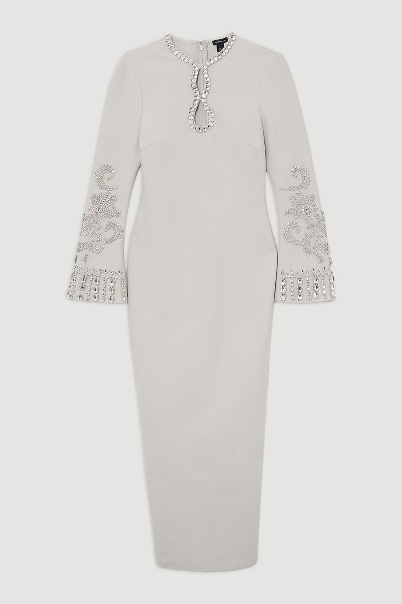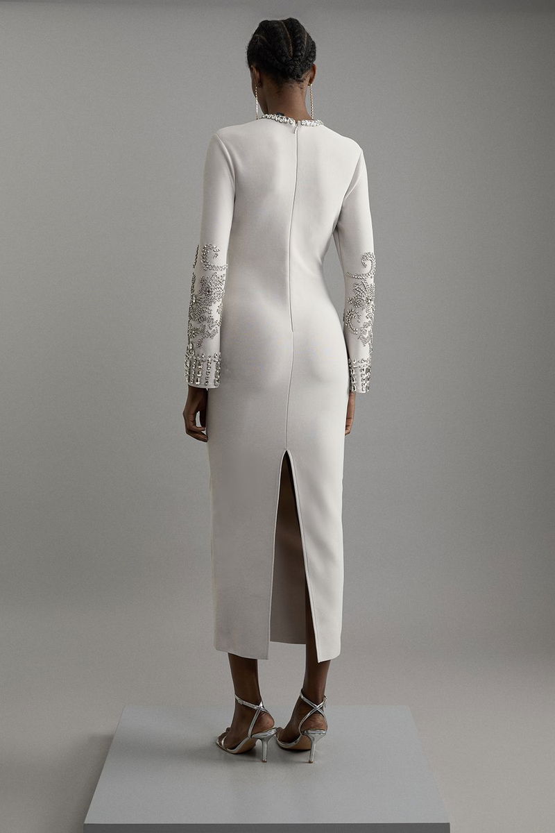 Figure Form Bandage Knit Embellished Wide Sleeve Maxi Dress