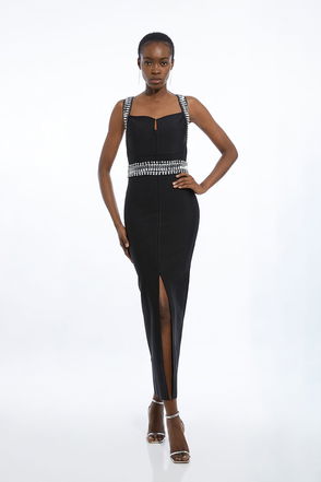 Add some sparkle in our embellished dress, with sparkling crystal detailing that highlights the cut out neckline and wide sleeves. Style this piece with strappy heels for an outfit that goes seamlessly from party nights to festive evenings.