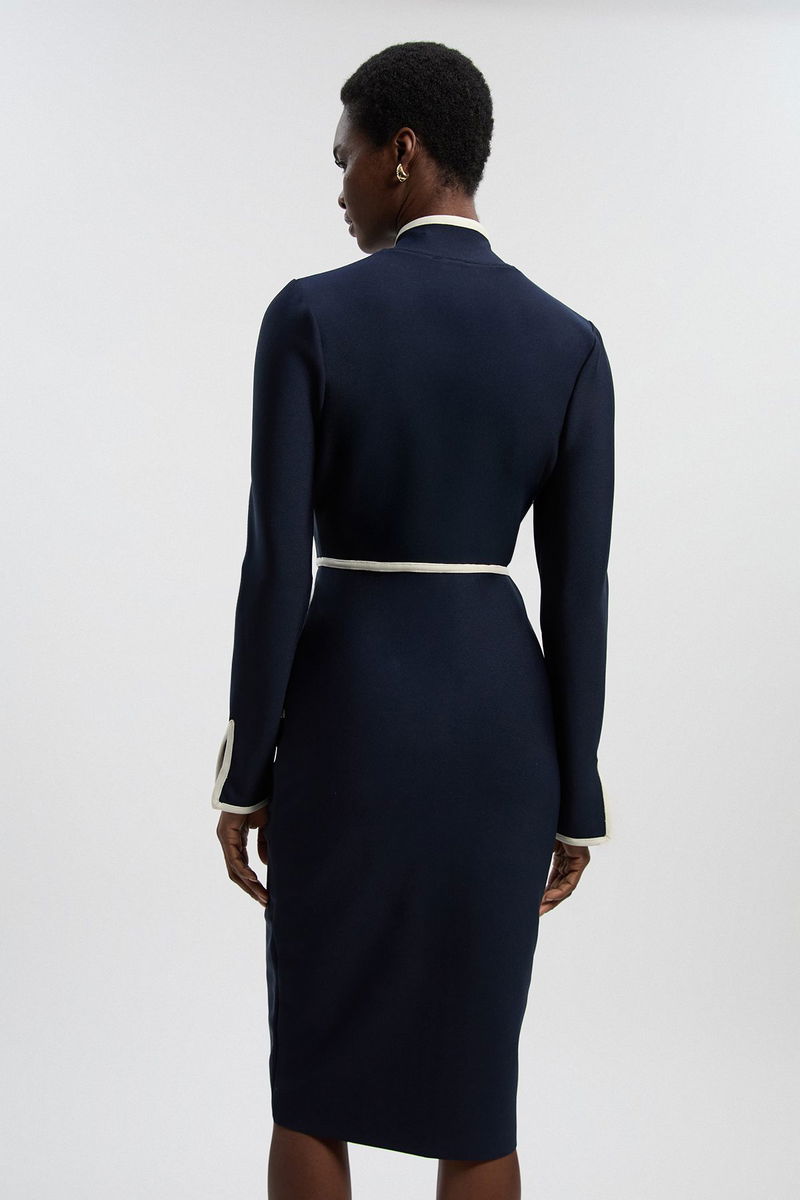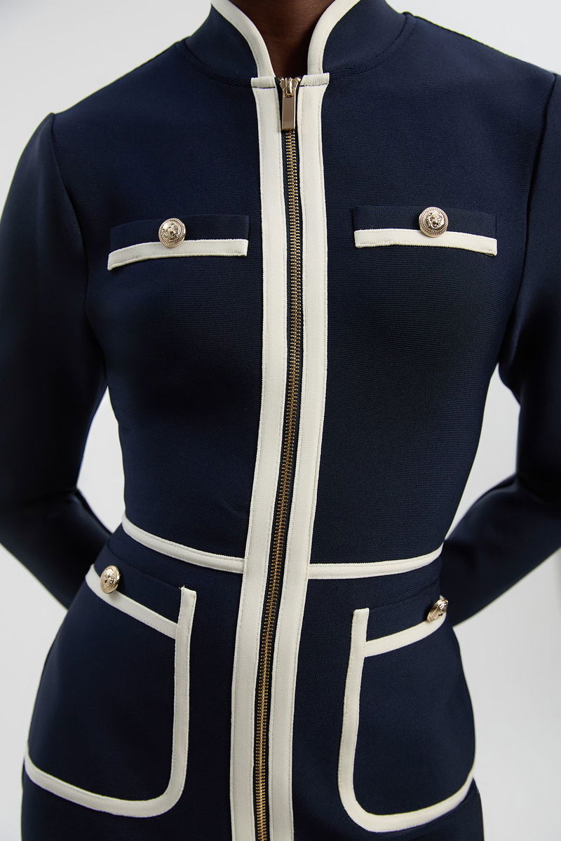 Figure Form Bandage Knit Piping Detail Military Midi Dress