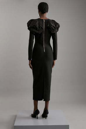 Make a statement no matter the destination in this jacket, featuring three dimensional ruffles across the sleeves and back, and a comfortable, relaxed fit. Style this piece with the matching skirt and court heels or stilettos for an evening look that can be reworn time and time again.