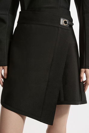 Figure Form Bandage Knit Woven Rosette Detail Mini Skirt