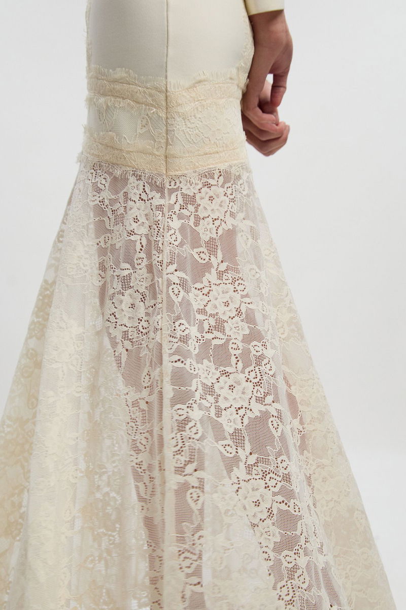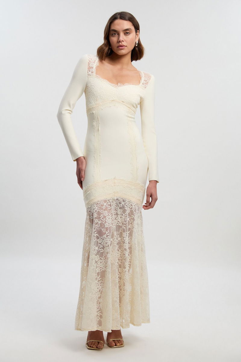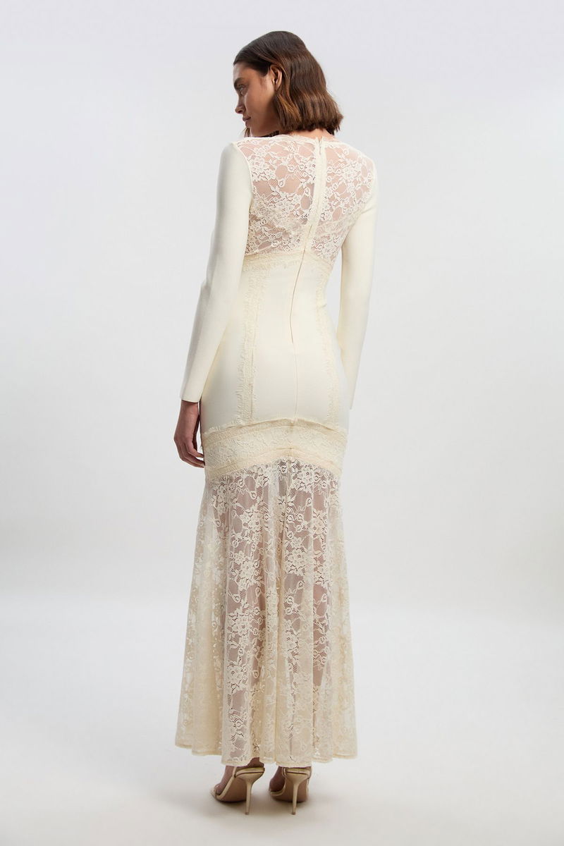 Figure Form Bandage Lace Mix Knit Maxi Dress