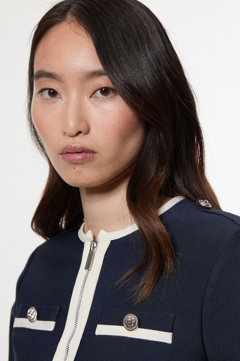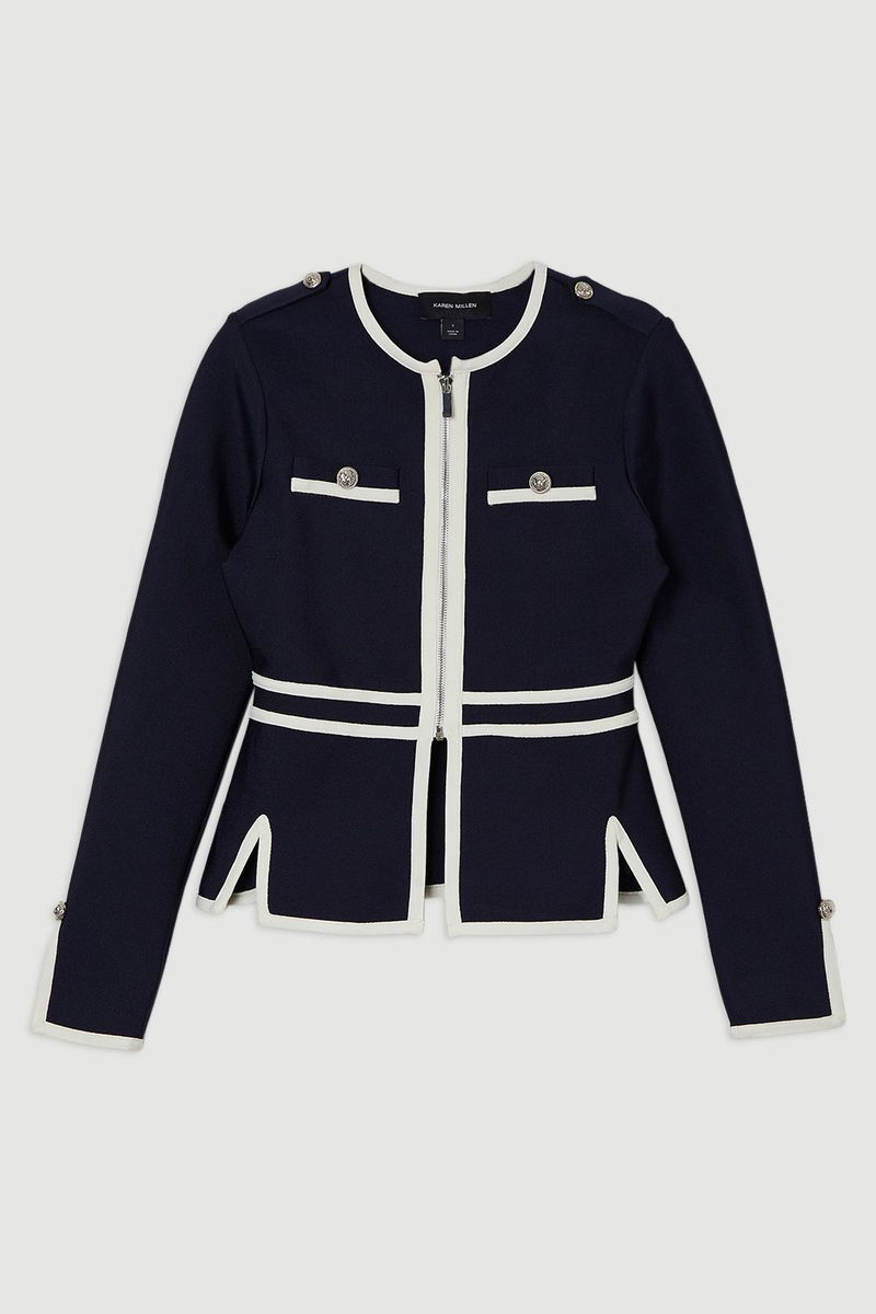 Figure Form Bandage Military Contrast Piping Knit Split Hem Jacket